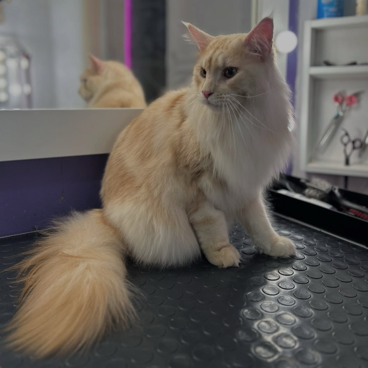 Полный комплекс — это не просто гигиена, а полноценная забота о внешности и комфорте кошки. Все процедуры подбираются с учётом характера животного и состояния шерсти, а уход проводится без седации, в спокойной обстановке.